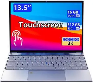 Exilapsire 13.5-inch Portable Touchscreen Laptop, (16GB RAM, 512GB SSD), 3K (30002000) IPS, Celeron N95 Processor up to 3.4 GHz, Backlit Keyboard, Fingerprint Unlocking, W11