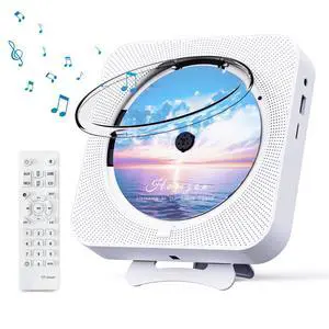 MICOCIOUS Bluetooth Portable Home CD Music Player with Remote Control, Timer, Built-in Speakers and LED Display - FM Radio Boombox (White)
