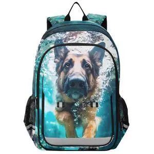 FUQIUMI Laptop Backpack Fashion Travel Backpack for Women Men German Shepherd Dog Swimming Underwater School Backpack for Teens Boys Girls,Water Resistant & Lightweight