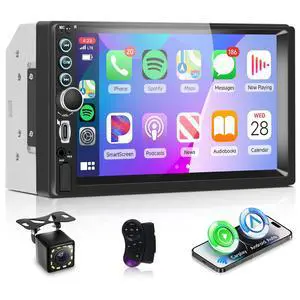 Orderich Double Din Car Radio with Wireless CarPlay Android Auto You-Tube, 7 Inch Touchscreen Car Stereo 2 Din with Backup Camera Support Mirror Link Bluetooth FM USB EQ Type C Steering Wheel Control