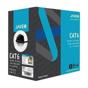 JAVEX CAT 6 Ethernet Cable 1000ft [UL Listed] in-Wall CM Rated 23AWG Solid Bare Copper, 600MHz, ETL Listed Made in Taiwan TAA Compliant, UTP Cat 6 Cable, Black