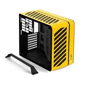 Mechanic Master C34Pro Compact Desktop PC Case with Carry Handle ^^ 360mm AIO Support, ATX/E-ATX (27cm Width), Long GPU Compatibility, Modular Design & Switchable 5-Slot Mode (Vitality Yellow)