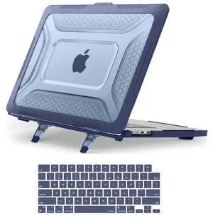 MOSISO Compatible with MacBook Air 15 inch Case 2025 2024 2023 M4 A3241 M3 A3114 M2 A2941, Honeycomb Shockproof Heavy Duty TPU Bumper Plastic Hard Case with Fold Kickstand&Keyboard Cover, Navy Blue