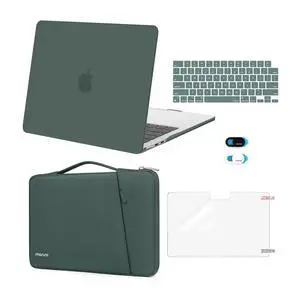 MOSISO Compatible with MacBook Air 13 inch Case 2025 2024 2023 2022 M4 A3240 M3 A3113 M2 A2681, Plastic Hard Shell Case&360 Protective Bevel Bag&Keyboard Cover&Webcam Cover&Screen Film, Emerald Green
