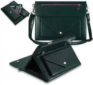 Dteck for iPad Air 3rd Generation/iPad Pro 10.5" Folio Case 2019/2017 with Shoulder Strap, Built-in Pencil Holder/Pockets/Card Cash Slots, Button Closure, PU Leather Shell Fold Stand Cover, 04 Green