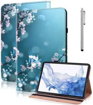 VODEFOX Case for Samsung Galaxy Tab S11 11 Inch, PU Leather Tablet Cases Flip Folio Multi-Angle Viewing Stand Protective Cover with Card Slots - Plum Blossom