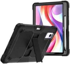 DWaybox Heavy Duty Case for Lenovo Idea Tab Plus 12.1 inch 2025 Model, 3-Layer Shockproof Armor Cover (Soft Silicone + Hard PC) with Kickstand & Pencil Holder -Black