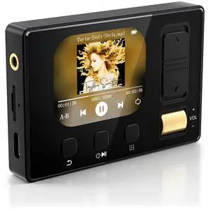 Diofox MP3 Player with Bluetooth 5.3, Portable Digital Lossless Music Player, HiFi Lossless Sound, Built-in HD Speaker, FM Radio, Voice Recorder, Earphones Included, MP3 Player for Kids, Black