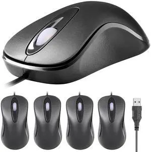 Mofkirg 5pack Classic Wired Office Mouse Ergonomic USB Optical 3-Button 1000 DPI Comfortable Durable for Windows Mac Laptop Desktop Black