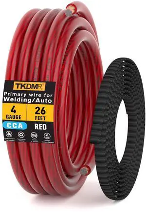 4 Gauge Wire Battery Cable - CCA 4 AWG Electrical Wire Extension Cord, 26FT Red with Cable Sleeves, for Automotive Power Ground, Battery Cable, Car Audio, RV