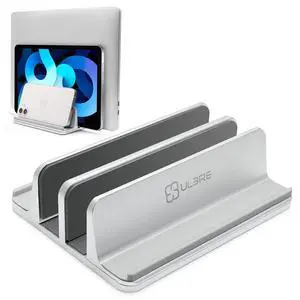 ULBRE Vertical Laptop Stand for Desk Aluminum Heavy Duty, 4 Slots Adjustable Laptop Holder MacBook Stands Compatible All iPad Surface Samsung HP Chromebook iPad Pro Air Upto 17.5'- Silver
