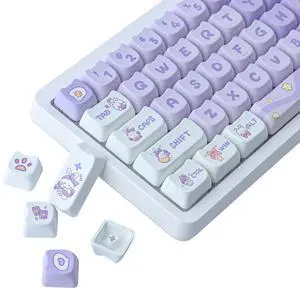 TYRIXKI PBT Keycaps 142 Keys Purple Dream Bunny Keycap Dye-Sublimation Cute Keycap Mao Profile Cat Shape Custom Keycaps for Cherry Gateron MX Swithes Mechanical Keyboards