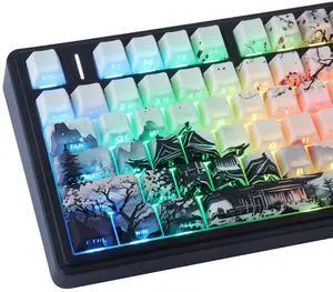 Anime character four-sided transparent pudding keycaps made of PBT and PC materials, with heat transfer printing technology Yuragome's transparent four-sided keycaps