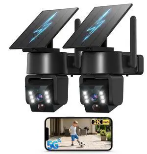 YULIOKPP 2PCK Wireless Outdoor Security Camera - 5G & 2.4G Wi-Fi Outdoor Camera, 2K Pan/Tilt 360 View, Solar/Battery Powered, PIR Human Detection, Color Night Vision,IP65/ Easy to Install