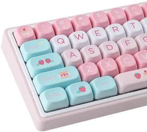 TYRIXKI PBT Keycaps 132 Keys MOA Keycaps, Cream Strawberry Cute Keycaps Dye-Sublimation Custom Keycap Set for Cherry Gateron MX Swithes Mechanical Keyboards
