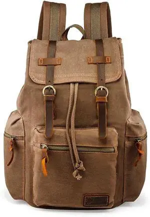 GEARONIC Vintage Canvas Backpack, Casual Daypack Backpacks for Men Women, 15inch Laptop Bag Travel Hiking Camping Rucksack - Brown