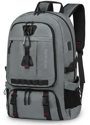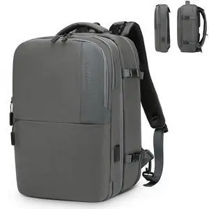 SUIKIHUM Travel Backpack for Men, 45L Expandable TSA Approved Laptop Backpack Fits 18.4 Inch, Water-Repellent W/Shoe Compartment & Wet Pocket Anti-theft Pocket, Grey