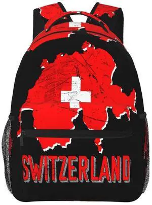 KOSUES Switzerland Swiss Flag Map Laptop Backpacks Double Shoulder Laptop Pack Bag Daypack Back Pack Bags Rucksack Computer Bag with Side Pockets Front Zipper Pockets For Commutes Travel