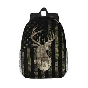 YANGZHI Camouflage Hunting Tactical Deer Camo American Flag 15 Inch Backpack Laptop Travel Bag For Men Women With Multiple Pockets Casual Hiking Gym Sport