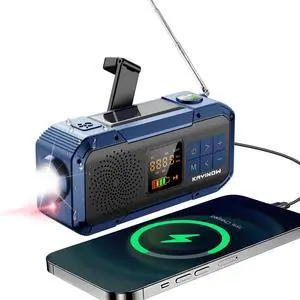 Portable Emergency Radio with AM FM NOAA,Bluetooth Speaker,2000mAh Rechargeable Battery,USB-C Hand Crank Solar Charging,Clear Sound Quality,Flashlight,SOS Alarm for Storm Power Outages Camping