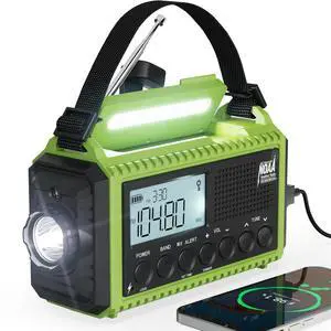 NOAA Emergency Radio with Auto Weather Alerts - 12000mAh Solar Hand Crank Weather Radio, 6 Power Sources, Bright LCD Digital Tuning, AM/FM/SW Receiver, SOS Alarm & Power Bank for Home Camping Survival