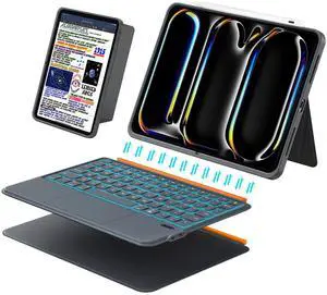 DANCESOUL Keyboard Case for iPad Pro 11 (M5 M4 2025 2024), 3 in 1 Magnetic Detachable Keyboard with Larger Trackpad, Spring Backlit Keys, 160 Adjustable Kickstand, Slim&Lightweight (Dark Gray)