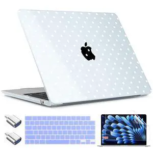 TWOLSKOO for MacBook Air 15 inch Case 2026 2025 2024 2023 Release M5 A3448 M4 A3241 M3 A3114 M2 A2941, Plastic Hard Shell & Screen Protector & Keyboard Cover & Type C Adapter, Blue Polka Dots