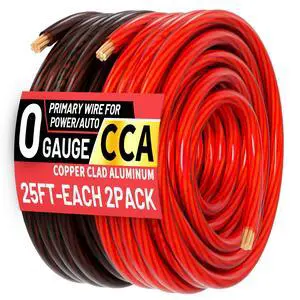 0 Gauge Wire (25FT Black + 25FT Red) CCA, Low Voltage Primary Automotive or Ground Cable, 1/0 Battery Cable, Car Audio, RV, Car Amplifier Power, Amp Wiring, Translucent Jacket