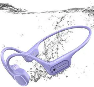 IP68 Waterproof Swimming Headphones, Bone Conduction Liquid Silicone Bluetooth Headphones, Built-in 32GB MP3 Player, Soft and Lightweight Open-Ear Design for Swimming/Marathons/Showers/Cycling(Purple)
