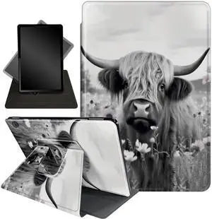 for Fire HD 10 Tablet Case 11th Generation 2021 and Fire HD10 Plus Case 10.1", 360 Degree Rotating Stand Smart Protective Case,for Fire HD 10 2021 Tablet,Highland Cow Ox Cattle