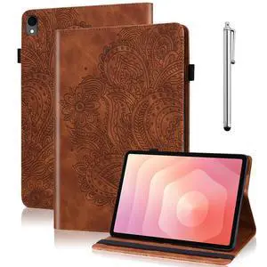 VODEFOX Case for Kindle Fire HD 10 & 10 Plus Tablet (13th/11th Generation, 2023/2021 Release) 10.1",PU Leather Folio Flower Cover with Card Slots for Fire Tablet HD 10 2023 - Brown