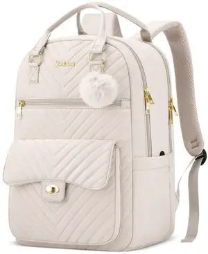 VANKANY Aesthetic Bookbag for School Girls, Laptop Backpack with Charging Hole for College Women Teens Casual Daypack, Beige