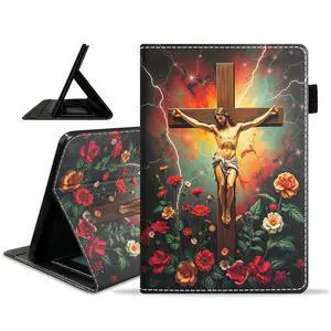 BWOOLL Case for Fire HD 10 Tablet 10.1 inch (9th/7th Generation, 2019/2017 Release), Slim Lightweight PU Leather Stand Cover with Auto Wake/Sleep, Christian Cross Jesus