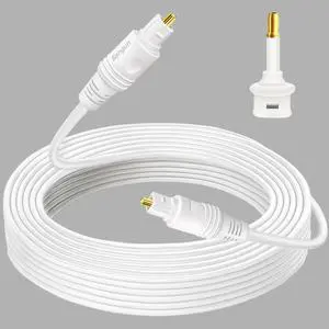 Bangun 100 Feet White Optical Audio Cable - Slim Toslink Digital Fiber Optic for Sound Bar, TV, PS4, Xbox
