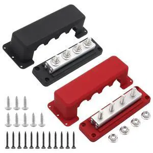 Gloaso Busbar 12V-48V DC 600A Copper Bus Bar Distribution Blocks with 4X 3/8" Posts Terminals Powerbar, Heavy Duty Battery Bus Bars with Cover for Car RV Solar Boat Marine Truck, Red&Black 2 Pack