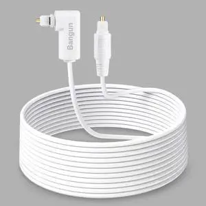 Bangun 100 feet White Optical Audio Cable, Slim 90 Degree Digital Audio S/PDIF Toslink Cord, Right Angle Fiber Optic Audio Cable for Sound Bar/TV/PS6/Xbox/Home Theater