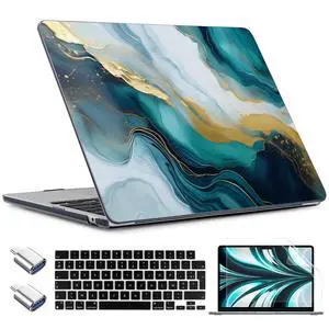 TWOLSKOO for MacBook Air 15 inch Case 2025 2024 2023 Release M4 A3241 M3 A3114 M2 A2941, Plastic Hard Shell & Screen Protector & Keyboard Cover & Type C Adapter, Graphite Marble