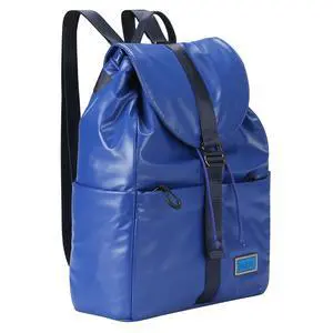 UNIKER Women's Metallic Shiny Backpack - Blue Trendy Waterproof Drawstring Puffer Bag, Y2K Fashion Backpack with Laptop Sleeve for Travel, Daily