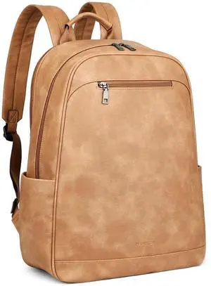 MASINTOR 15.6 inch Leather Laptop Backpack Purse for Women, Designer Travel and Work Bag with Laptop Compartment Retro Camel