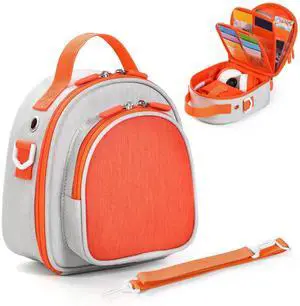 Carrying Case Compatible with Yoto Mini 2024 Edition Kids Audio Music Player & Headphone, Travel Storage Bag for Audiobook Cards Radio (Up to 30 Cards) with Adjustable Strap,Orange(Bag Only)