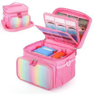 Piaclen Travel Carrying Case Compatible with Yoto Player Bluetooth Speaker,30 Cards Storage Bag with Handle and Shoulder Strap,Portable Travel Storage box for Player & Headphone Accessories (Pink)