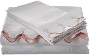 Belle Epoque Traditional Scalloped Embroidered Sheet Set King White/Pink, 4 Piece
