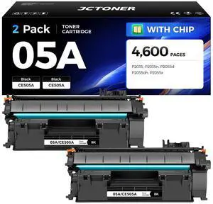 05A Black Toner Cartridge 2-Pack with chip High Yield Replacement for HP 05A CE505A 05X CE505X Toner Compatible Works with HP LaserJet P2035 P2035n P2055 P2055d P2055dn P2055x Printer Series Ink Copy