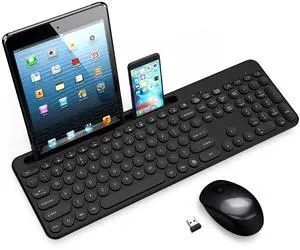 LeadsaiL Wireless Keyboard and Mouse, Full-Sized Ergonomic Computer Keyboard with Phone Tablet Holder, 2.4GHz Silent Cordless Keyboard Mouse Set for Windows Laptop, PC, Desktop - Black