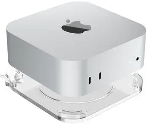 CaSZLUTION Clear Acrylic Desktop Stand for Mac mini M4/M4 Pro 2024 Enhanced Cooling & Easy Access Design ^^ Anti-Slip Rubber Feet, Transparent Mac mini Holder