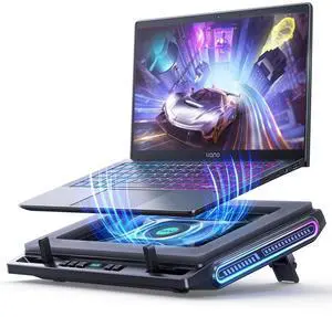 llano V10 Gaming Laptop Cooling Pad, RGB Laptop Cooler Stand with Powerful 4.72 Inch External Turbo Cooling Fan, Fast Cooling Computer 13-17.3in, Button Control, 3 Adjustable Stand, 4-Port USB C&A