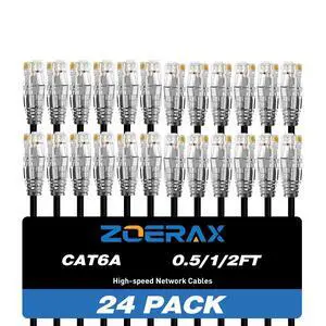 ZOERAX Cat6a Patch Cables 1ft (24 Pack), Slim Cat6 Ethernet Patch Cable 10Gbps 550MHz, RJ45, Gold-Plated Connectors, Internet for PC, TV, Tablet, Router, Printer, Servers, IT Data Center