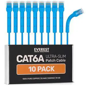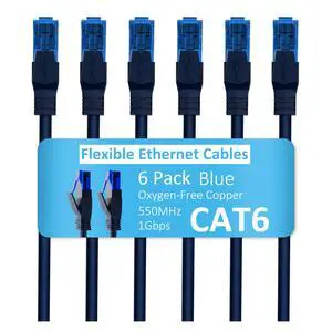 Cat6 Ethernet Cable 10 FT (6-Pack), Snagless Cat 6 Patch Cable, Upgraded Flexible PVC Jacket, Multi-Pack, OFC, 1Gbps, Cat6 Internet Network Cables, UTP, PC, Router, Servers, IT Data Center, Blue