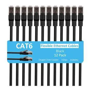 Cat6 Ethernet Cable 4 FT (12-Pack), Snagless Cat 6 Patch Cable, Upgraded Flexible PVC Jacket, Multi-Pack, OFC, 1Gbps, Cat6 Internet Network Cables, UTP, PC, Router, Servers, IT Data Center, Black