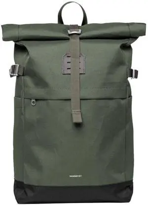 Sandqvist Men's Icon Medium Rolltop Backpack, Dawn Green With Dark Brown, One Size